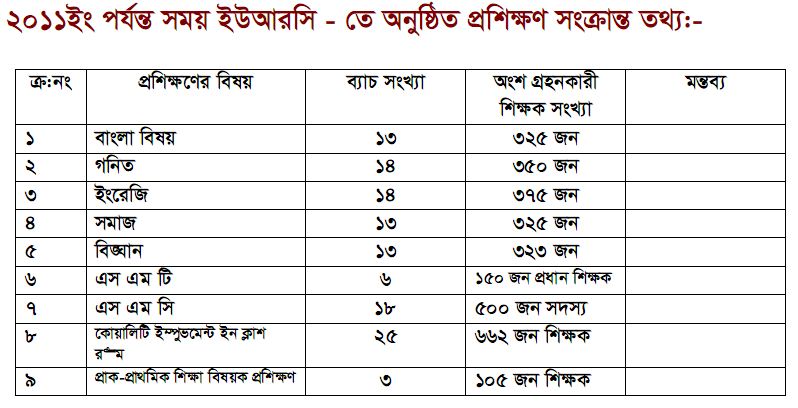 ২০১১ সালে ইউআারসি তে প্রশিক্ষন