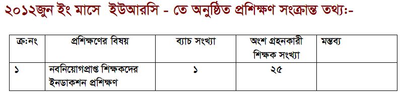 ২০১২ সালে ইউআারসি তে প্রশিক্ষন