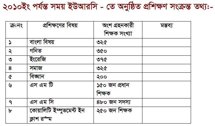 ২০১০ সালে ইউআারসি তে প্রশিক্ষন